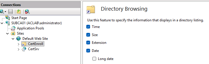 Copy the CA Root, CA Root CRL and Subordinate certificates from C:\Temp and place them in C:\Certsrv. From IIS Manager on the SubCA, click CertEnroll, select advanced settings and change the physical path. This new path is replicated between both Subordinate Servers, and is also backed by the load balancer we deployed earlier.