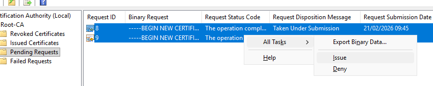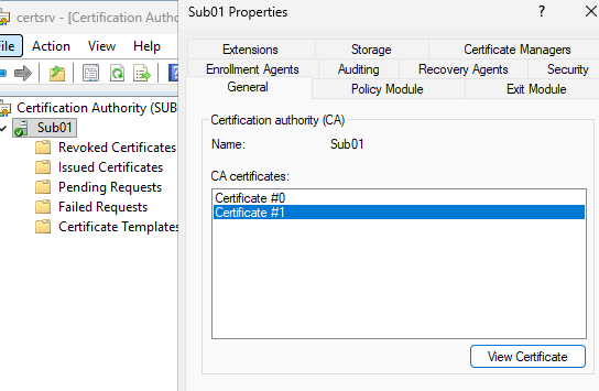 Repeat the above steps for the second SubCA, then validate the overall health with pkivew.msc.