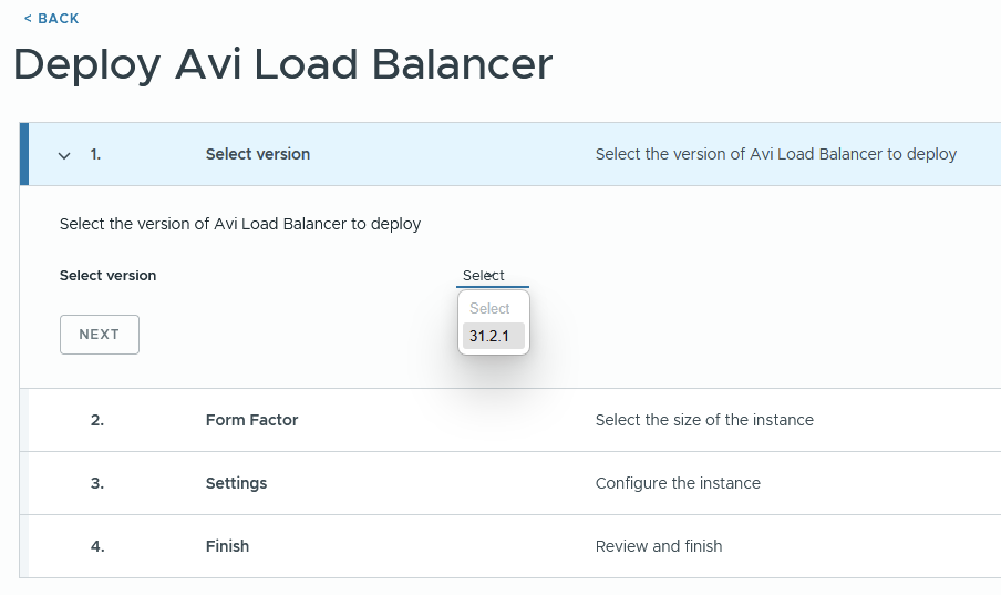Select the required size. Follow the guidance in the table below. Small will scale up to 200 service engines. Note that whatever you choose, three control plane nodes will be deployed for HA reasons. Click next.