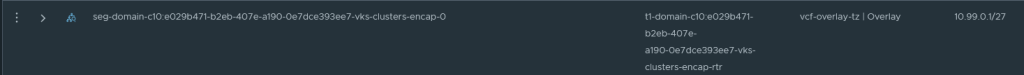 A second segment for the VKS nodes will be attached to the Tier-1 gateway for this namespace.
