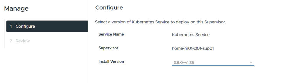 Next, go into supervisor management > supervisors > select the supervisor > configure > overview within supervisor services. Select the Kubernetes service, then click manage.